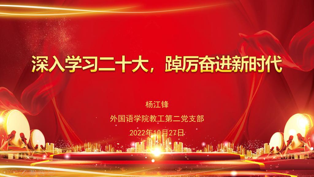 为深入学习党的二十大报告,深刻理解二十大精神,公司党总支10月27日组织三个党支部共同上党课《深入学习二十大,踔厉奋进新时代》,由伟德国际victor1946教工第二党支部书记杨江锋主讲。