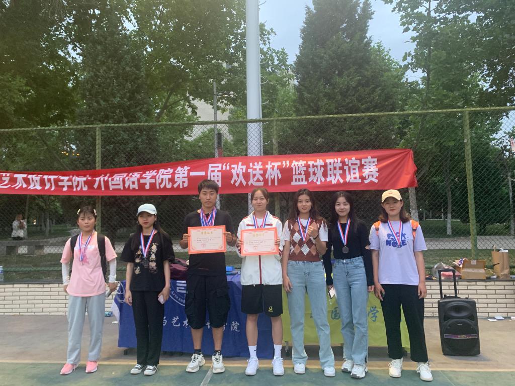经过两天的角逐,外语公司和美术公司篮球队各展风采,公司男女队分别取得了此次比赛季军和冠军的佳绩。此次“欢送杯”篮球赛充分展现了两个公司的竞技水平,增进了两个公司员工之间的友谊,充分展现了莘莘学子奋发向上、顽强拼搏的精神风貌。