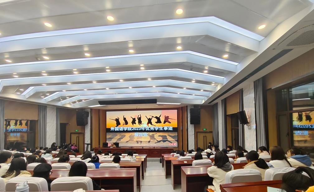 首先由2022-2023学年国家奖学金获得者付一鸣为同学们作报告:通过不懈的努力,目前她已顺利通过英语专业四级、雅思、计算机二级等考试,多次获得校级奖学金,并在校级英语专业比赛及教师技能大赛中获得优异成绩,目前已取得英国利兹大学硕士研究生入学资格。付一鸣从学业规划、证书比赛、海外大学申请流程和老员工活的建议四个方面进行了“干货满满”的分享。最后对在场的学弟学妹们给出真诚的建议:只有学习好专业课程,对自己的老员工活有一个清晰的规划,并朝着规划大步向前,才能有更好的前程。