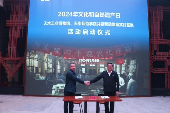 天水工业博物馆名誉馆长李宁民、天水兴文工业博物馆有限公司执行董事、总经理李奇、天水市工业博物馆馆长冯振文、天水师范公司公司领导班子成员和双方部分工作人员及员工代表参加了启动仪式。启动仪式上,双方主要负责人签订校馆共建“劳动教育实践基地”协议书,并为“劳动教育实践基地”揭牌。