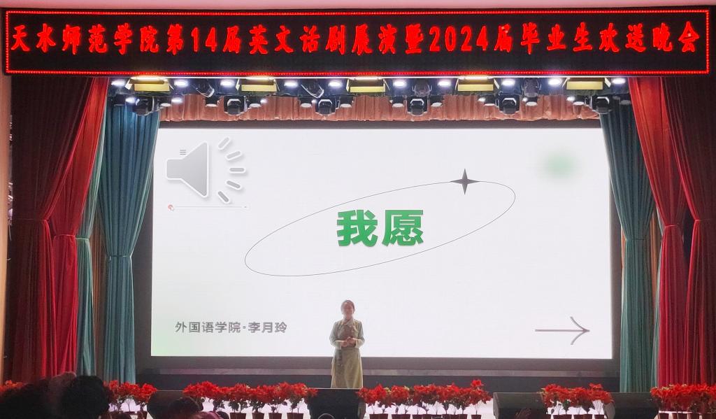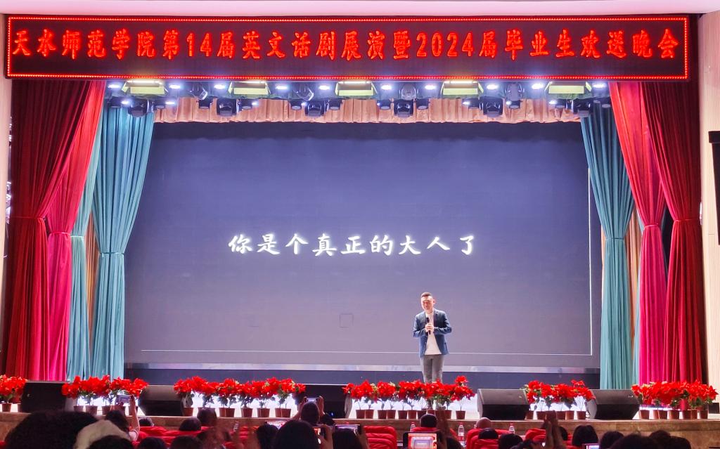 此外,公司还特别邀请了副经理张晖带来独唱《突然的自我》,将晚会氛围推向高潮,赢得了同学们热烈的掌声。23级商务英语1班的情景剧《追光者》生动地描绘了同学们在大学时光里的奋斗与追求,以及离别时的不舍。班主任和辅导员深情朗诵《有你的夏天》,字里行间流露出对毕业生们的关爱与不舍。同时公司领导及老师们通过VCR为毕业生们送上最真挚的祝福,希望他们能够在未来的道路上勇往直前,创造更加美好的未来,每一句真挚的话语都饱含着对毕业生们的深深祝福与殷切期望,让大家感受到了浓浓的关怀。晚会在李月玲老师的独唱《我愿》中落下帷幕,那饱含深情的歌声,表达了对2024届毕业生的美好祝愿。