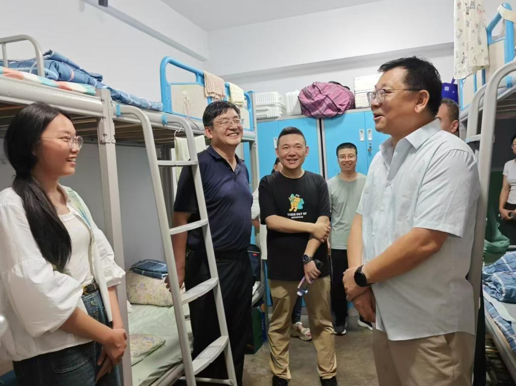在一间间精心布置、充满青春气息的宿舍里,是新生们忙碌而有序的身影:他们有的正在整理行李,有的则围坐一起,分享着初来乍到的喜悦与期待。领导和老师们亲切地与新生们交谈,询问他们来自哪里、对新环境是否适应、生活上有没有遇到什么困难等。新生们也积极地回应着老师们的关心,分享着自己初入大学的感受及对老员工活的期待。领导和老师们鼓励新生要珍惜大学时光,勇于探索未知领域,积极参与各类文体活动和社会实践,不断提升综合素质。同时,也强调了宿舍作为老员工活的重要场所,同学们应保持宿舍整洁,室友间相互尊重、团结友爱,共同营造一个安全、和谐、向上的生活环境。