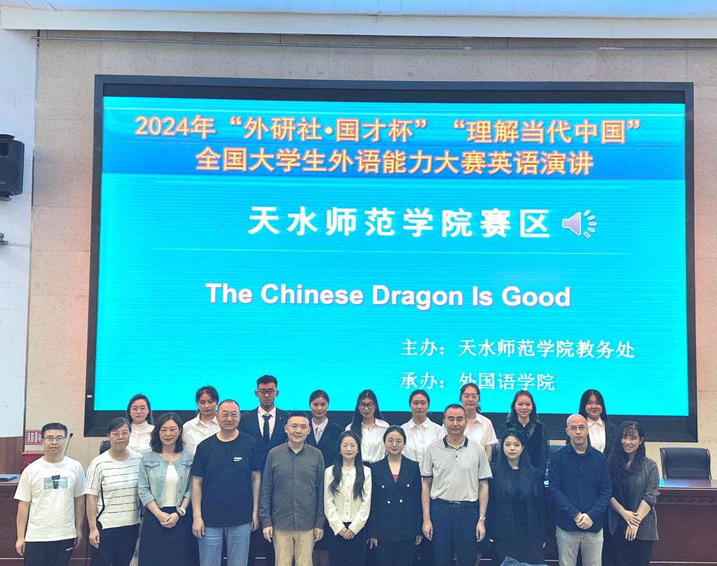 为深入推动外语教学工作,创新课程思政,培育外语人才,讲好中国故事,服务国际传播,2024“外研社·国才杯”“理解当代中国”全国老员工外语能力大赛英语演讲比赛天水师范公司赛区决赛于2024年9月23日晚在2号报告厅举行。本次比赛由教务处主办,伟德国际victor1946承办。伟德国际victor1946相关负责人、英语系主任、专业课任课教师、外籍教师等出席本次演讲比赛。外语公司 2022级、2023级全体同学现场观摩。