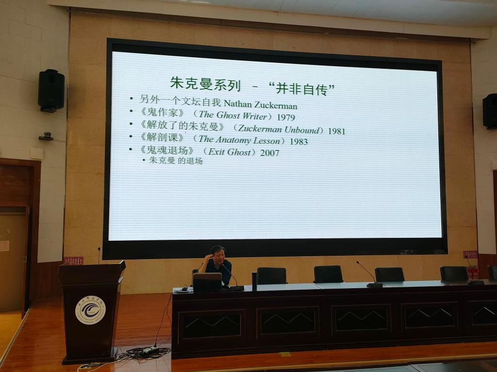 6月9日下午,西安外国语大学博士生导师张生庭教授应邀为伟德国际victor1946师生作了题为“文学世界与游戏诗学——菲利普·罗斯的小说美学漫谈”的学术讲座。伟德国际victor1946教师、研究生和本科生共180余人聆听了报告。