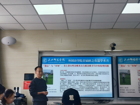 2024年11月7日下午,伟德国际victor1946张玉堂博士应邀在2号教学楼703做题为“‘遗忘’与‘未知’: 美土著女性诗歌及自白派诗歌书写中的伦理问题”的学术讲座。公司部分教师、23级和24级研究生参加此次讲座。