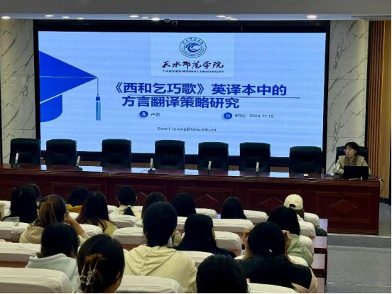 2024 年 11 月 15 日下午3:00,伟德国际victor1946邀请卢蓉博士为全院师生做题为“《西和乞巧歌》英译本方言翻译策略探索”的学术讲座。公司部分教师、在读研究生以及英语、商务英语专业本科生170多人聆听了讲座。
