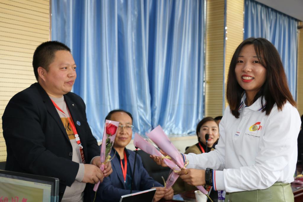 首先,李旭明经理和代表陇南师专员工的员工处处长李晓江共同为其捐赠的“千秋鼎”揭幕。随后,英语系主任刘彦峰代表公司接受员工、天水市长城中学老师闫武装为公司捐赠个人专著《筑梦》。同时,座谈会现场还展示了员工、天水市博物馆馆员陈红波为公司捐赠的书法作品。在校员工代表给每位员工敬献了鲜花,并送去学弟学妹们对师兄学姐们诚挚的祝福。